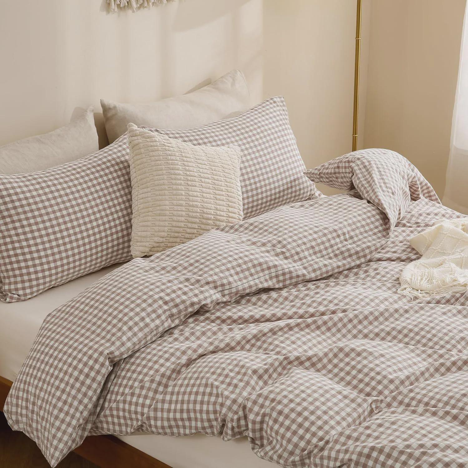 Material: 100% Washed Cotton with Linen-Like Texture. Premium breathable cotton featuring a relaxed, slightly crinkled finish for rustic charm. Ultra-soft and durable, designed to grow softer with every wash. Special anti-fade treatment ensures long-lasting color vibrancy.